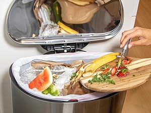 - Includes 200 tall kitchen garbage bags